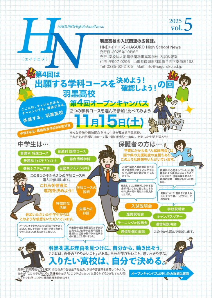 - オープンキャンパスや入学試験の前日頃には参加者、出願者へ向けてメールで連絡を行います。登録時のみメールが届き、その後届かない方はお問い合わせページの【羽黒高校】入試・入学関連総合連絡フォームからお問い合わせください。