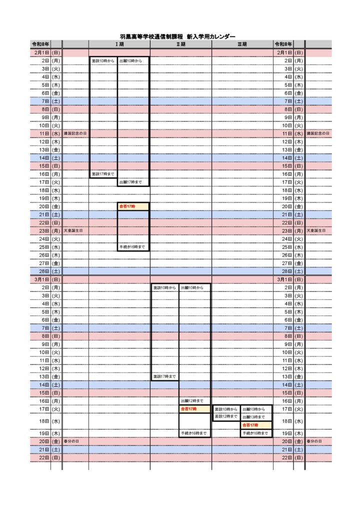 入学手続き締切令和8年2月25日(水)16時令和8年3月19日(木)16時令和8年3月19日(木)16時